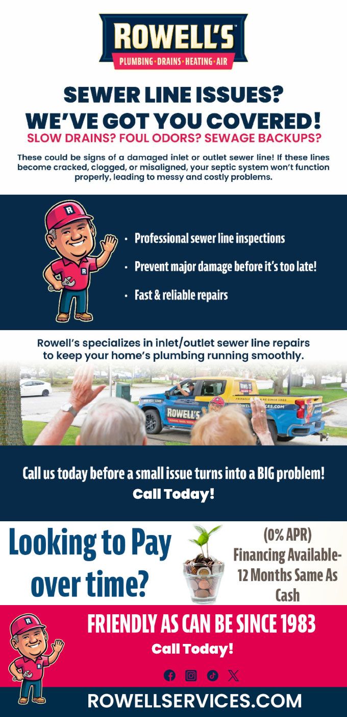 Rowell's specializes in inlet/outlet sewer line repairs to keep your home's plumbing running smoothly.